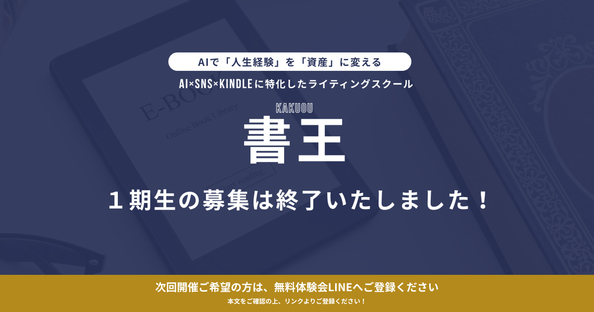 女性 40代 AI技術で夢だったKindle出版に挑戦。長文を書くハードルが一気に下がりました 書くことが好きで基礎を学びたい、本を出す夢を叶えたいと思い受講しました。長文に苦手意識がありましたが、AIを使うことで小説風の文章もスラスラ書けるようになり、Kindle出版に向けて大きな一歩を踏み出せました。 受講講座 ものかきキャンプ 受講時期 2025年4月